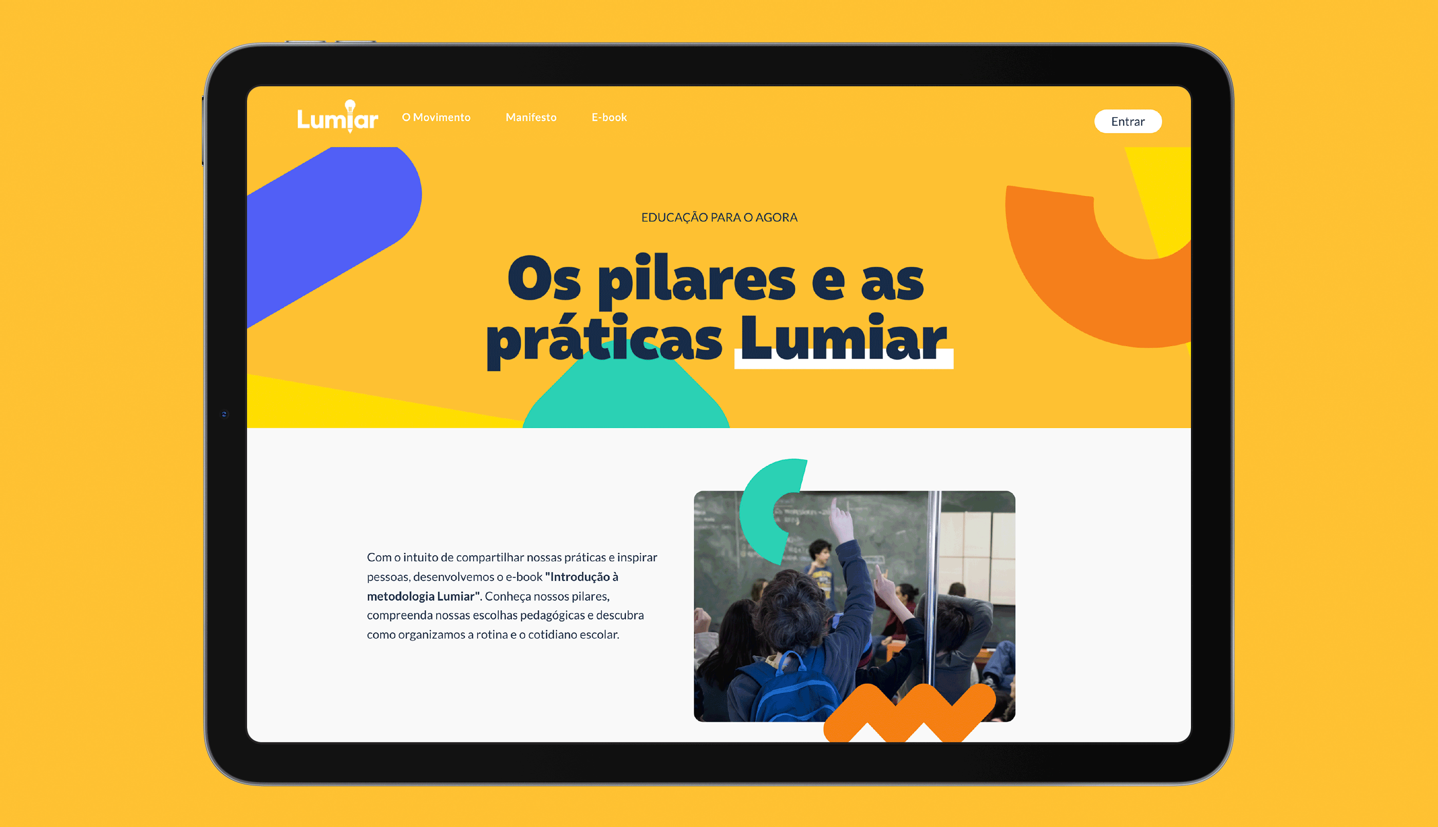 In terms of the visual identity of the page, I followed the Lumiar Educação brand identity: the predominant use of yellow in contrast to blue, orange and green shapes. Photos and a series of the institutional illustrations were also used. The campaign’s target audience was extensive and ranged from students and parents to school managers, teachers and government members.